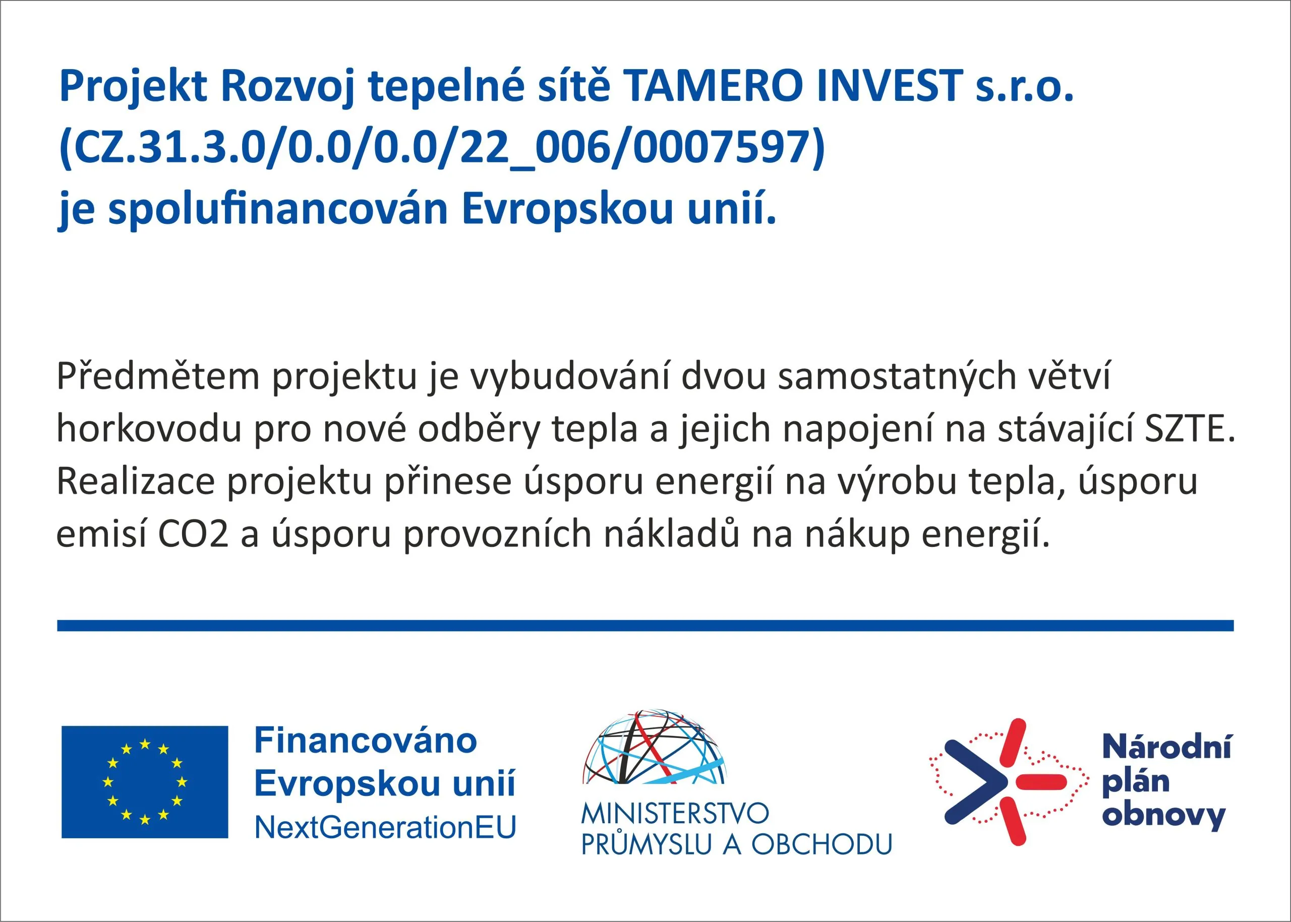 - TAMERO INVEST s.r.o., provozuje jeden vlastní zdroj elektřiny na plynná paliva.